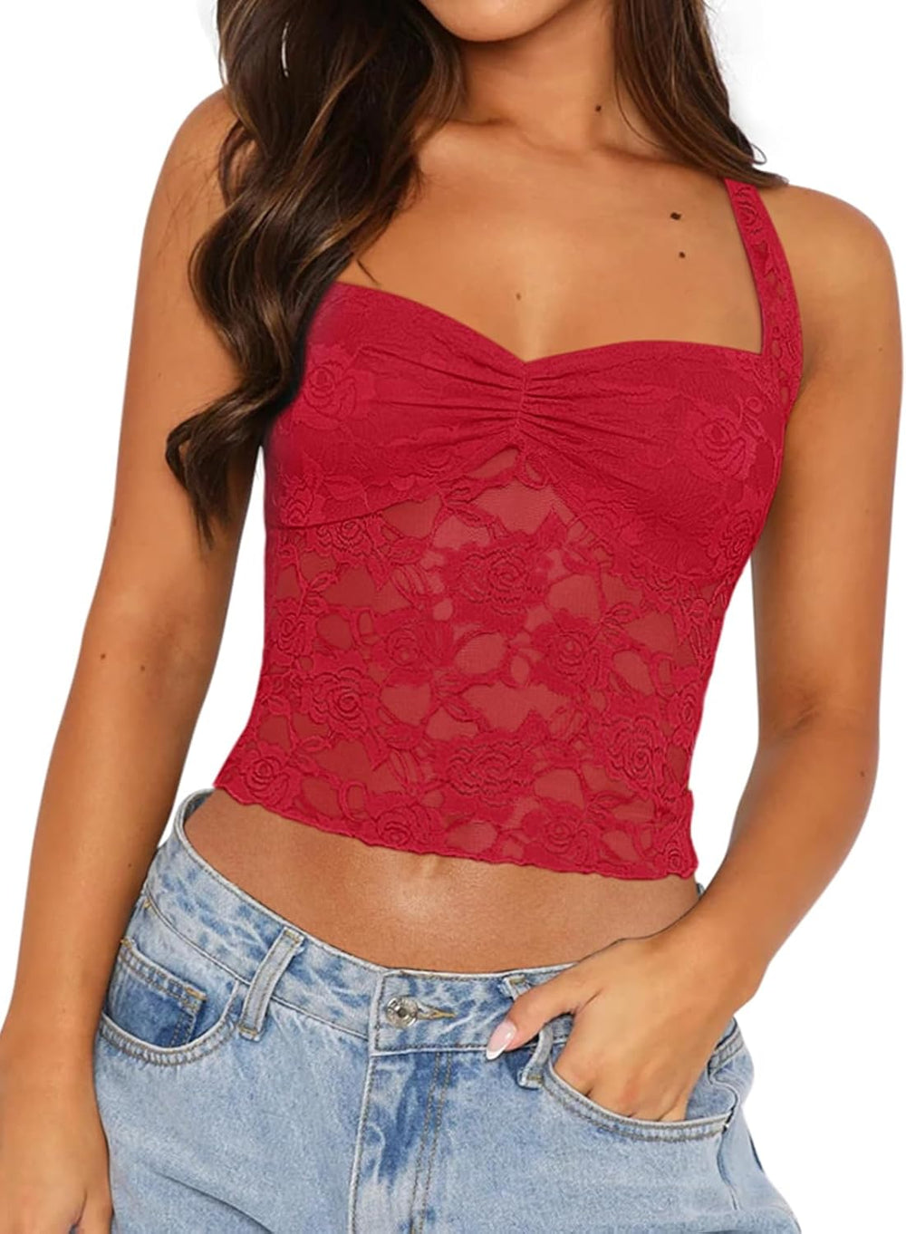 This lace tank tops suitable for both women and girls. Great for layering or wearing as a sexy crop top.Wear it with jeans, skirts, shorts, etc.