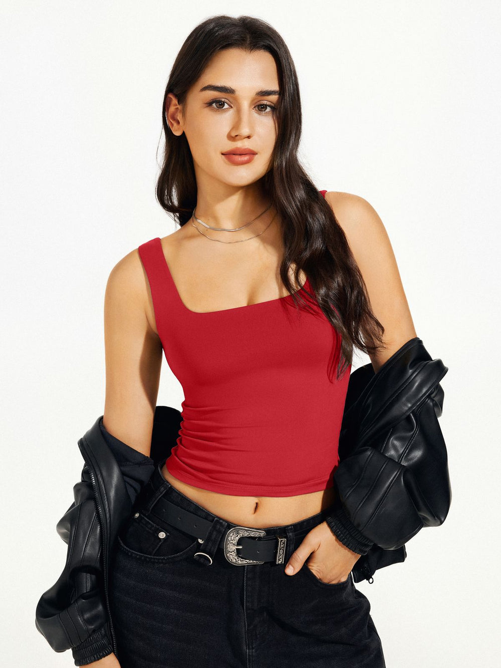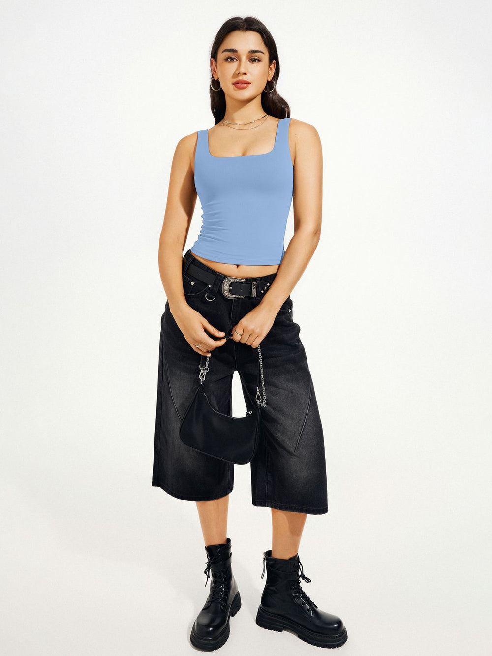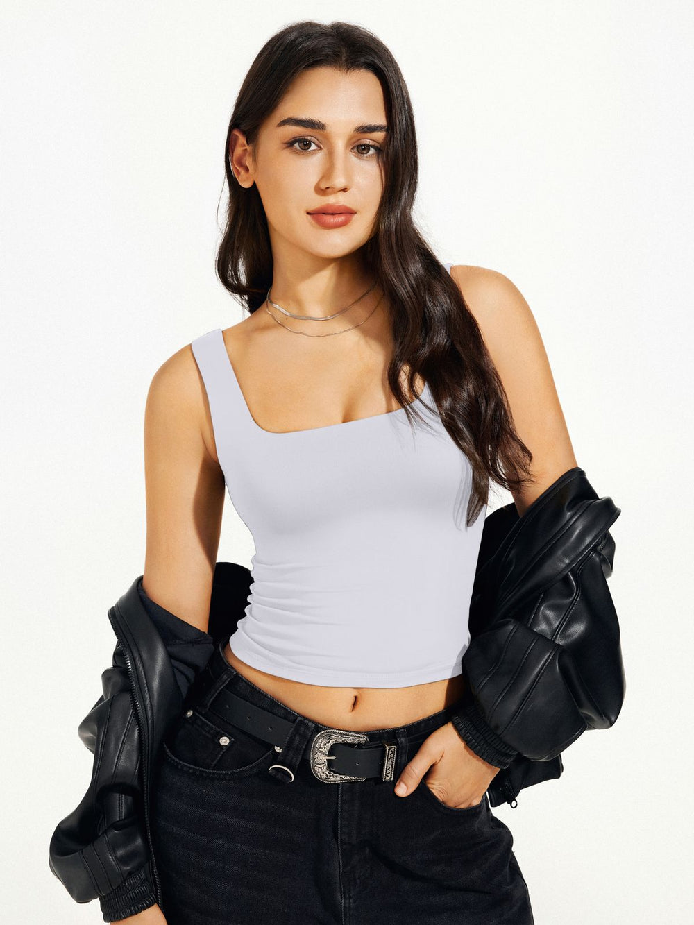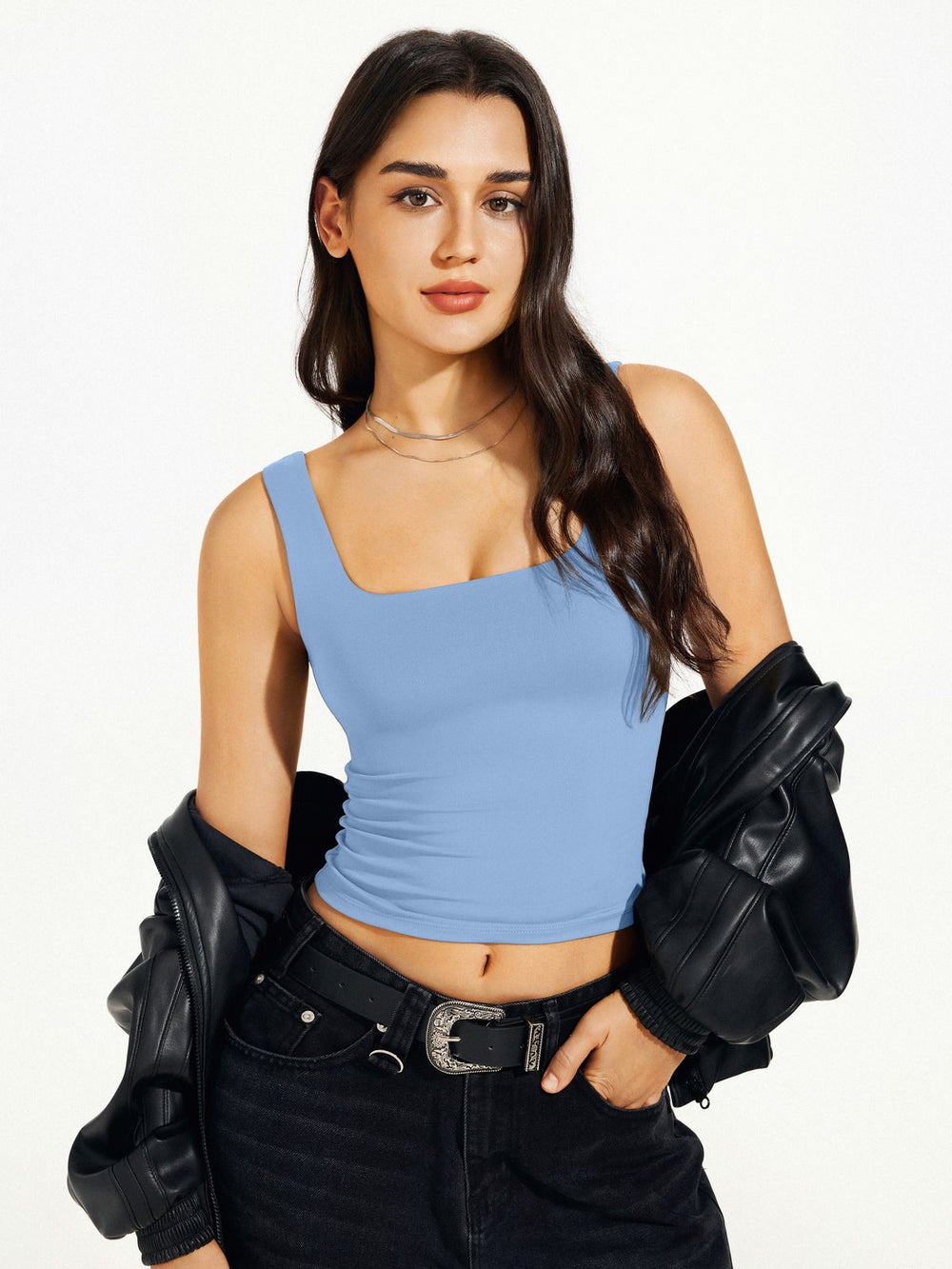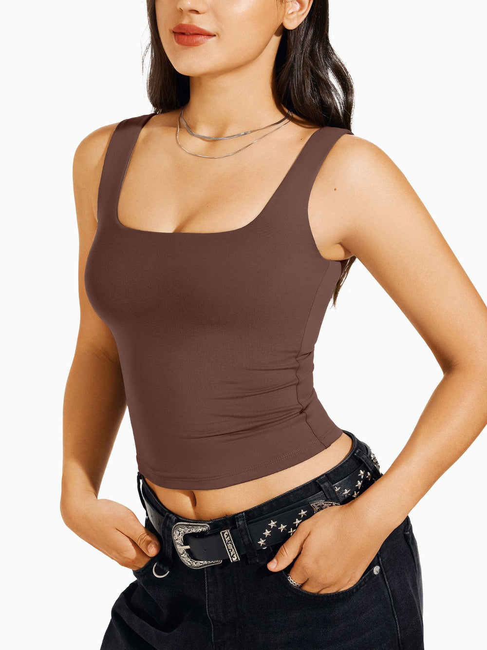 🌸 Design & Features: This crop top features a square neckline that elegantly shows off your collarbone and a hint of cleavage, a sleeveless fitted design to keep you cool and comfortable, and a double-lined finish for full coverage, so you can skip the bra with confidence.