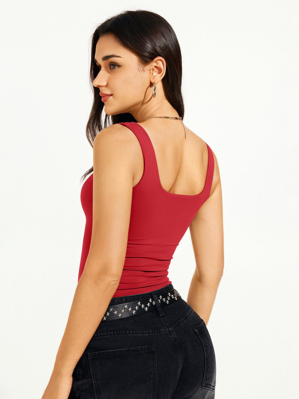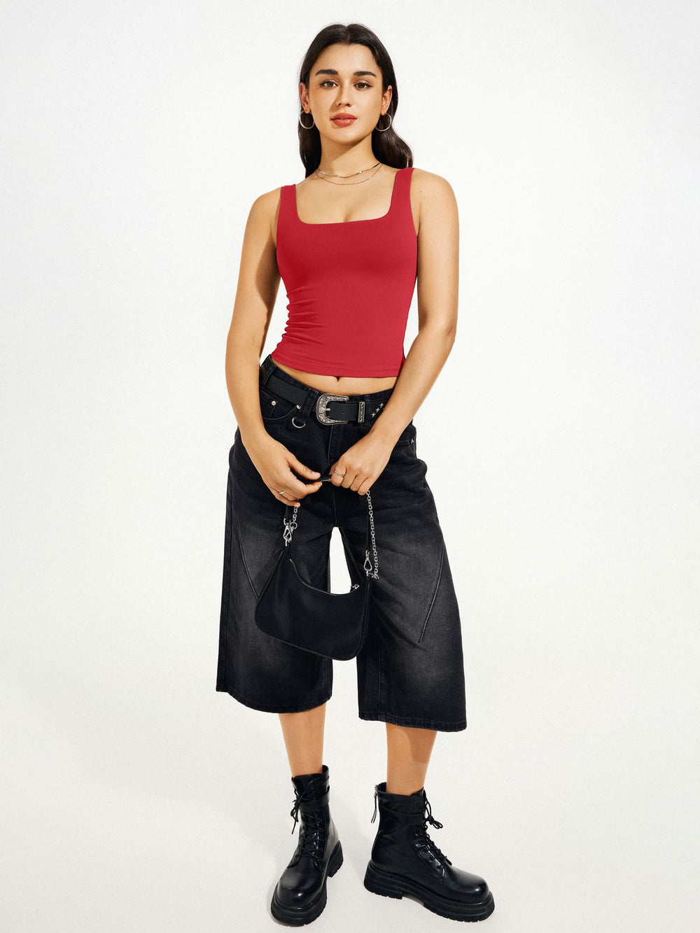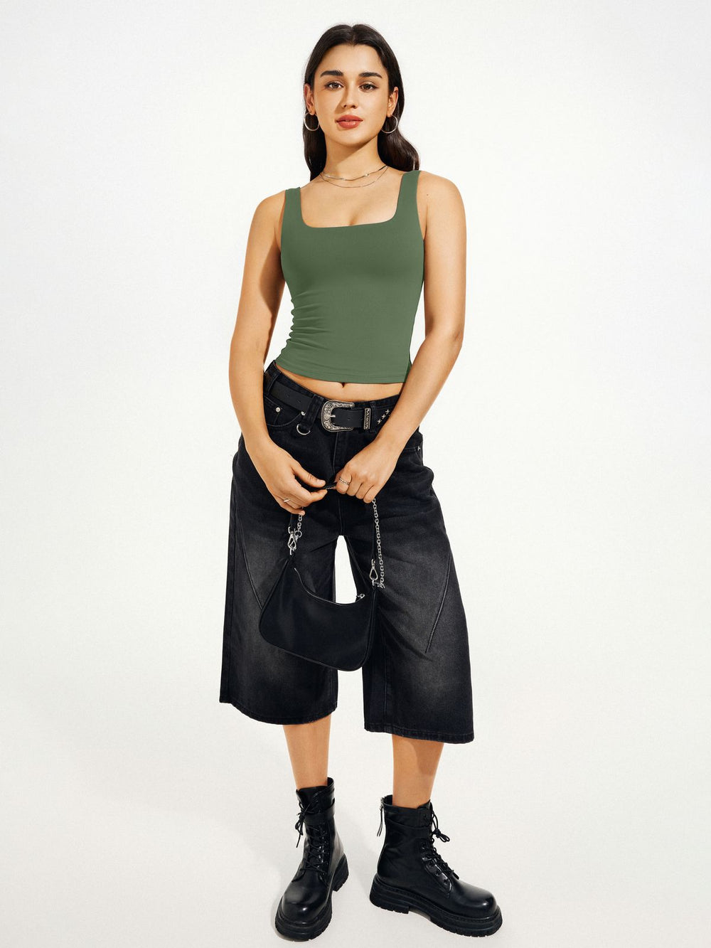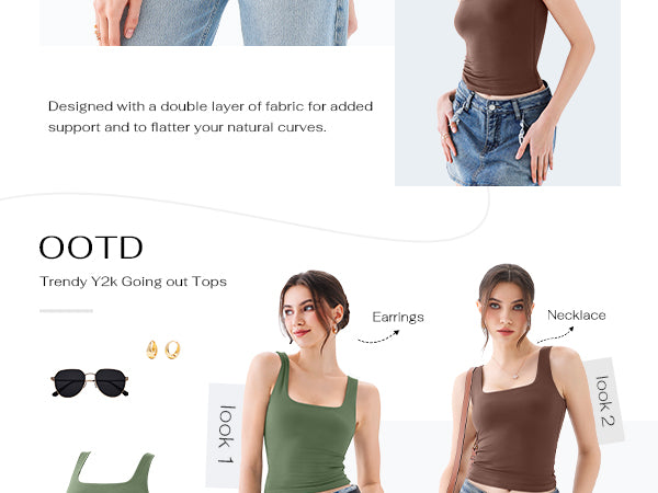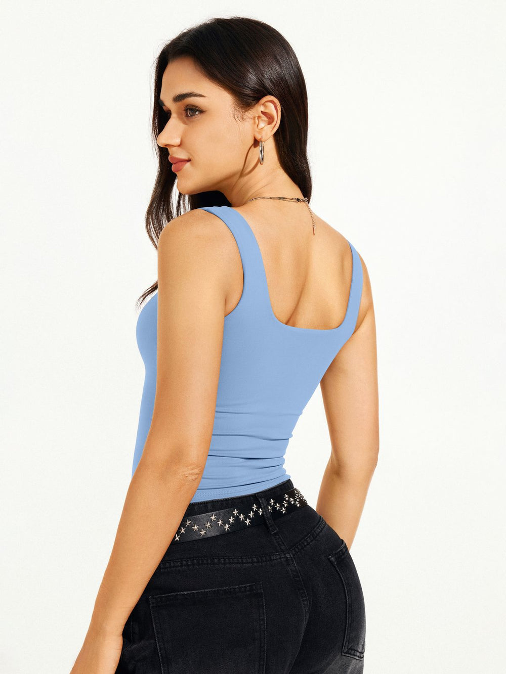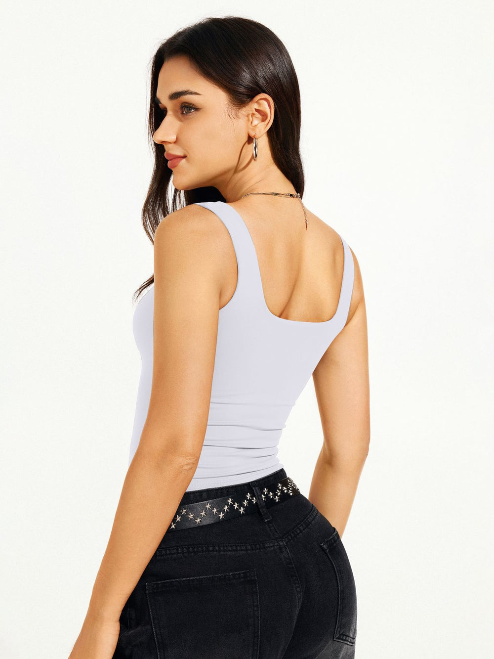 🌸 Design & Features: This crop top features a square neckline that elegantly shows off your collarbone and a hint of cleavage, a sleeveless fitted design to keep you cool and comfortable, and a double-lined finish for full coverage, so you can skip the bra with confidence.