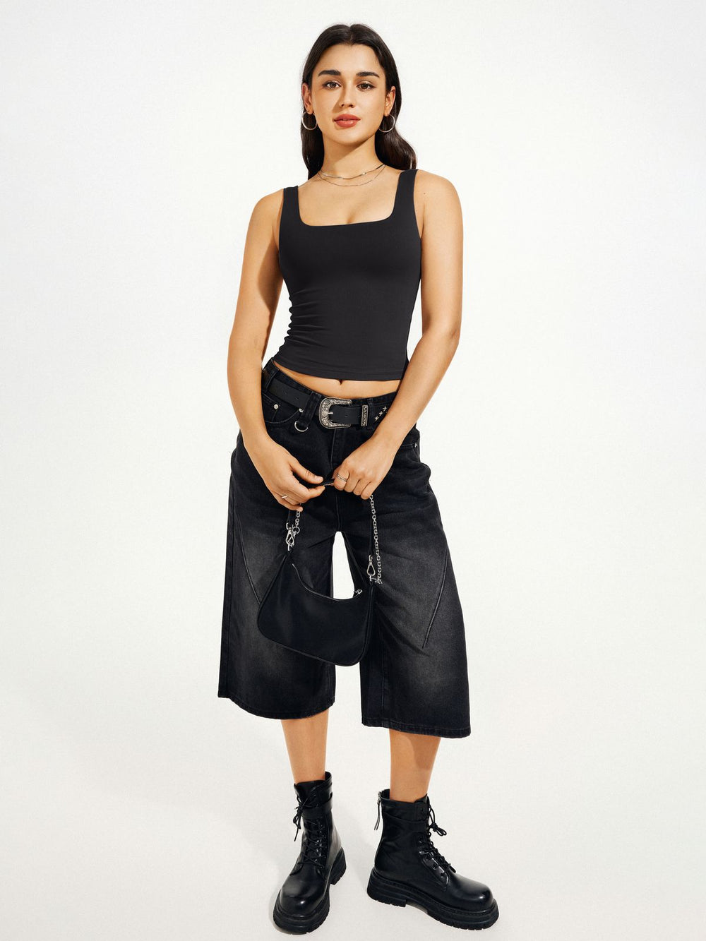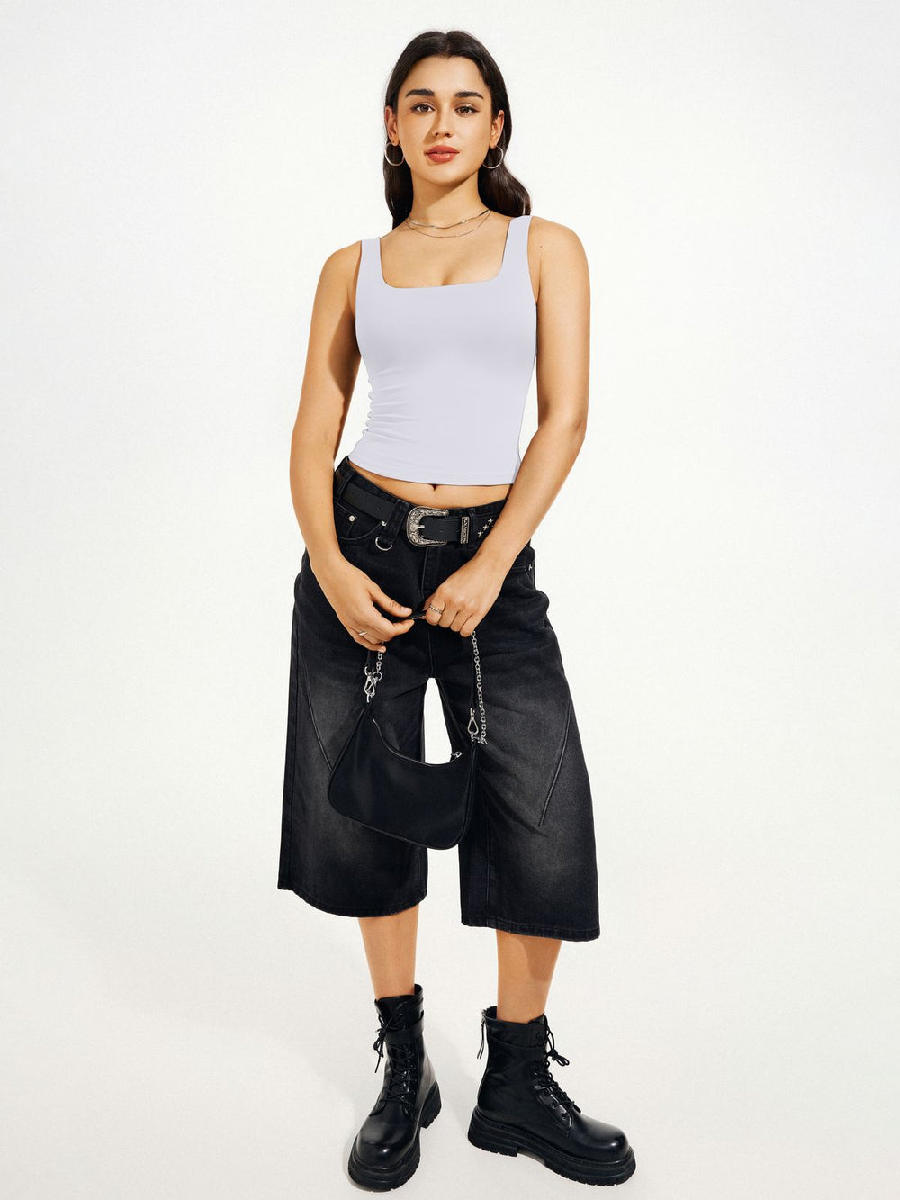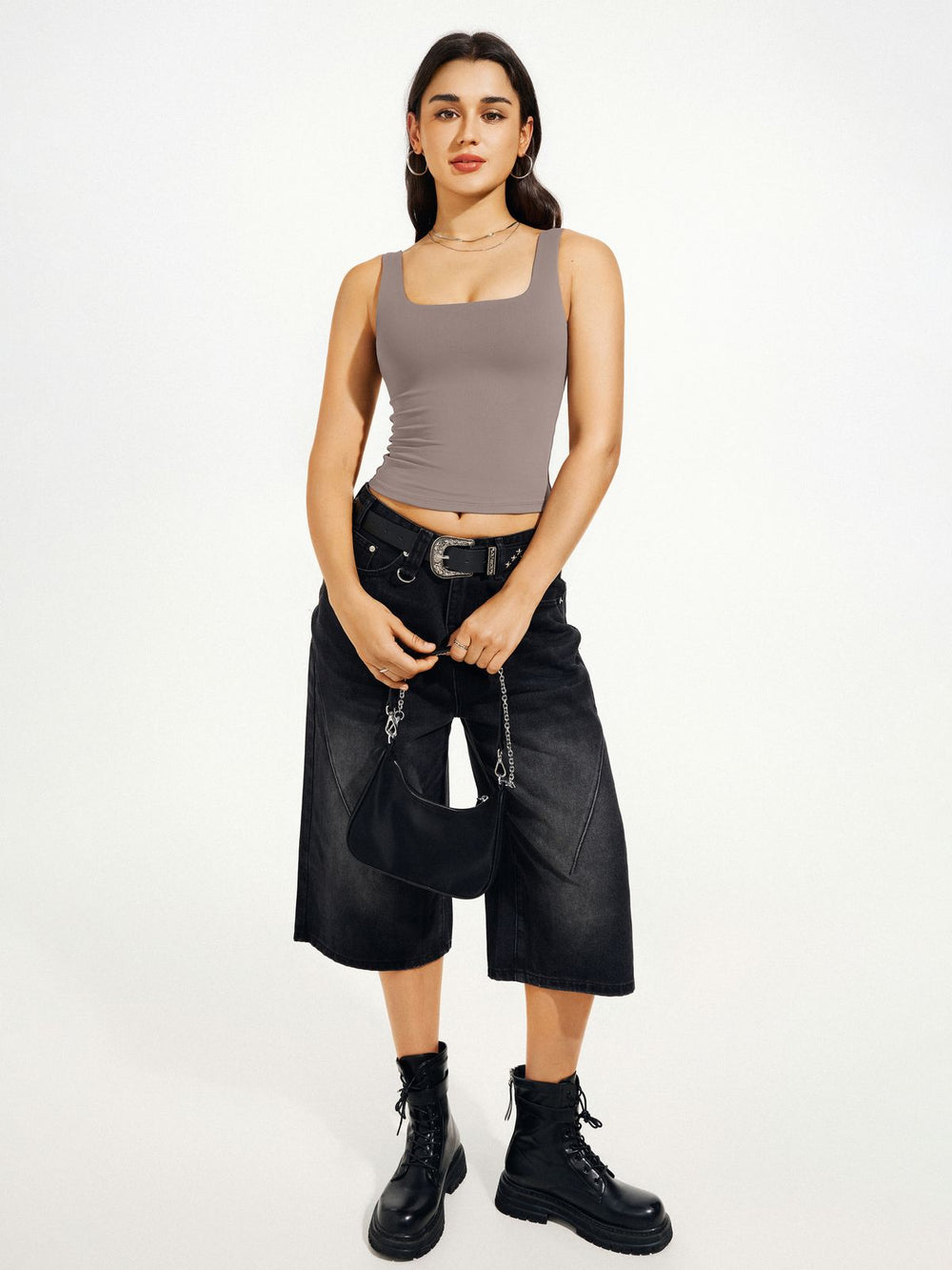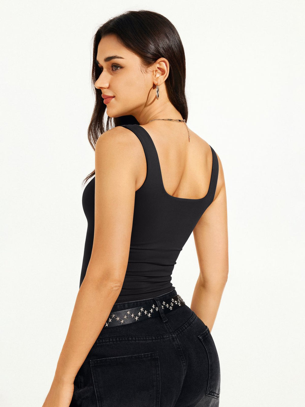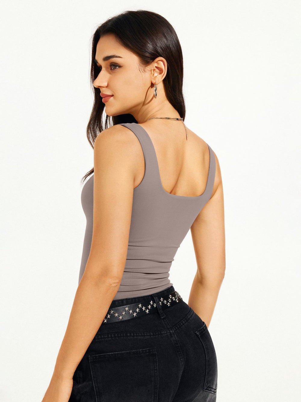 🌸 Design & Features: This crop top features a square neckline that elegantly shows off your collarbone and a hint of cleavage, a sleeveless fitted design to keep you cool and comfortable, and a double-lined finish for full coverage, so you can skip the bra with confidence.