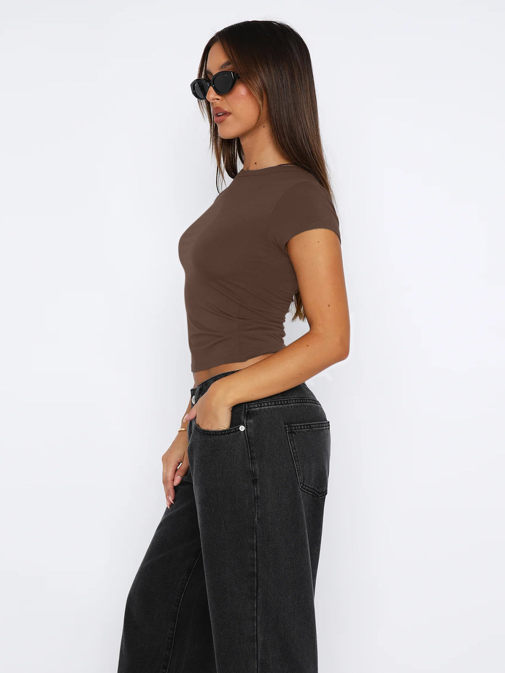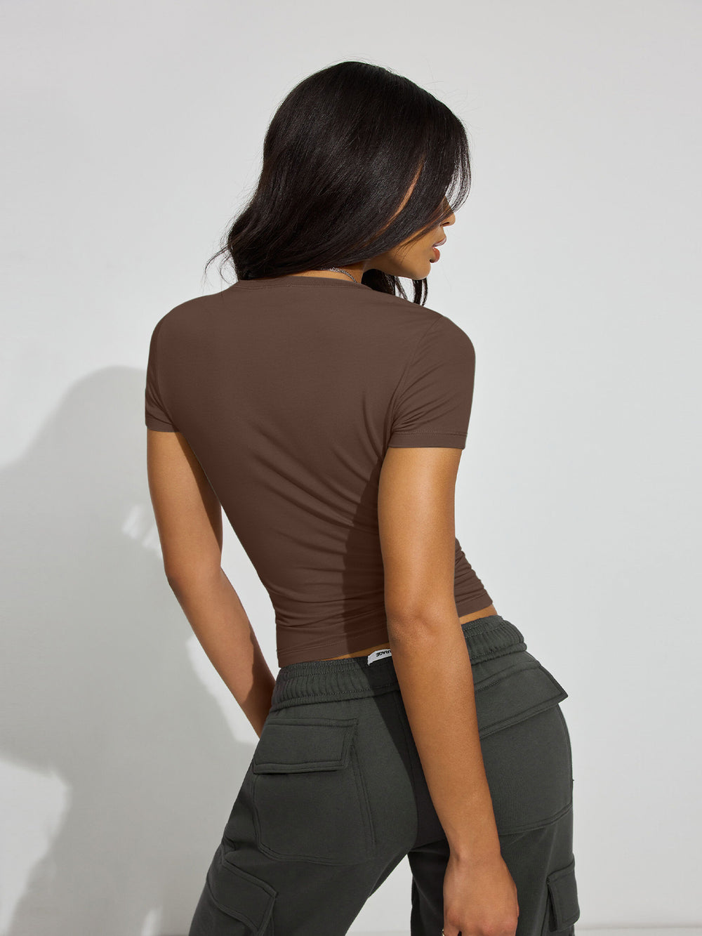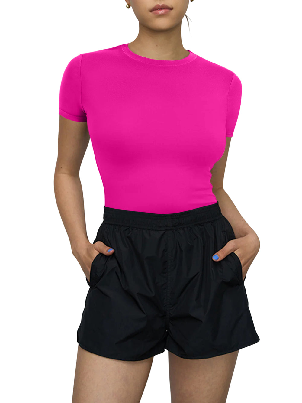 Design: This top features a cute, slim-fitted, and casual style with a crew neck and short sleeves. It comes in both cropped and regular styles, giving you the option to wear it as a regular top or fold it up for a trendy crop top look