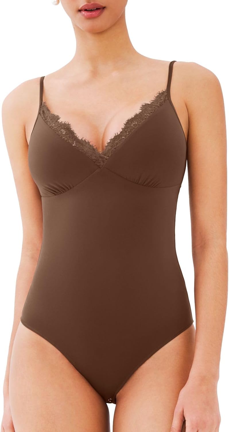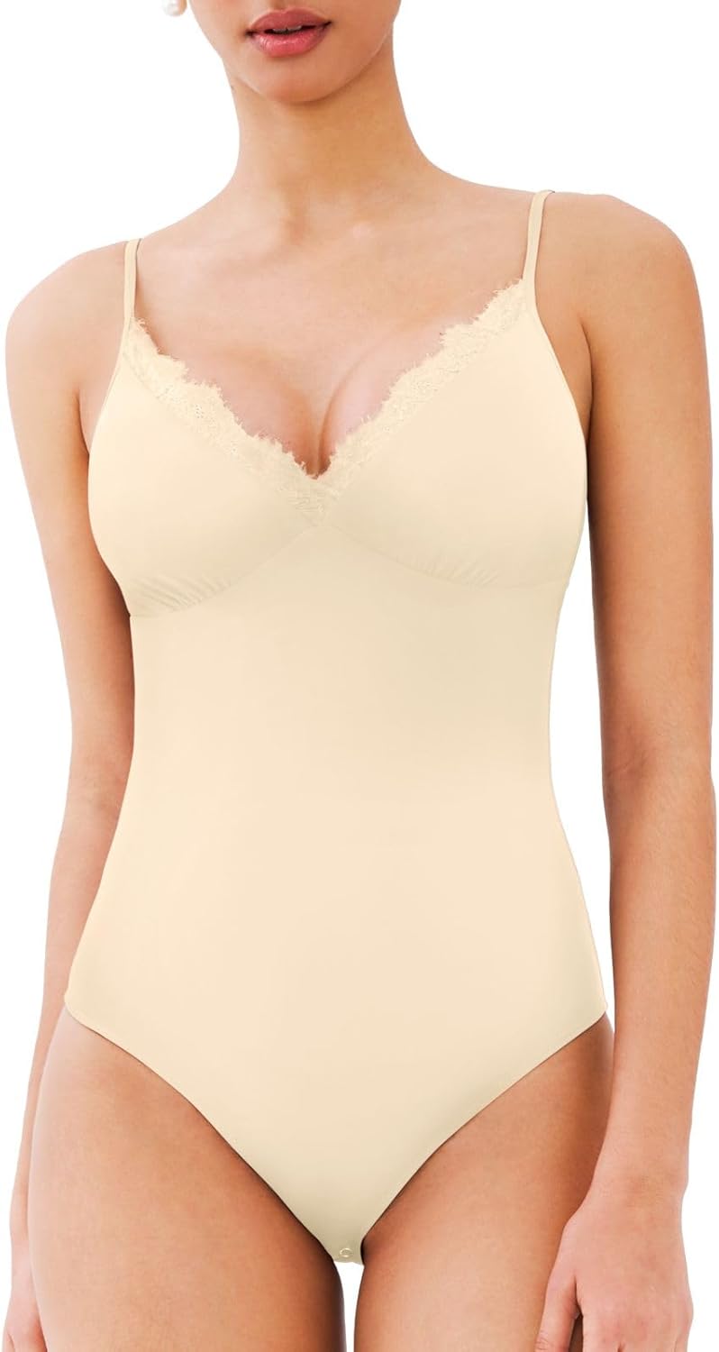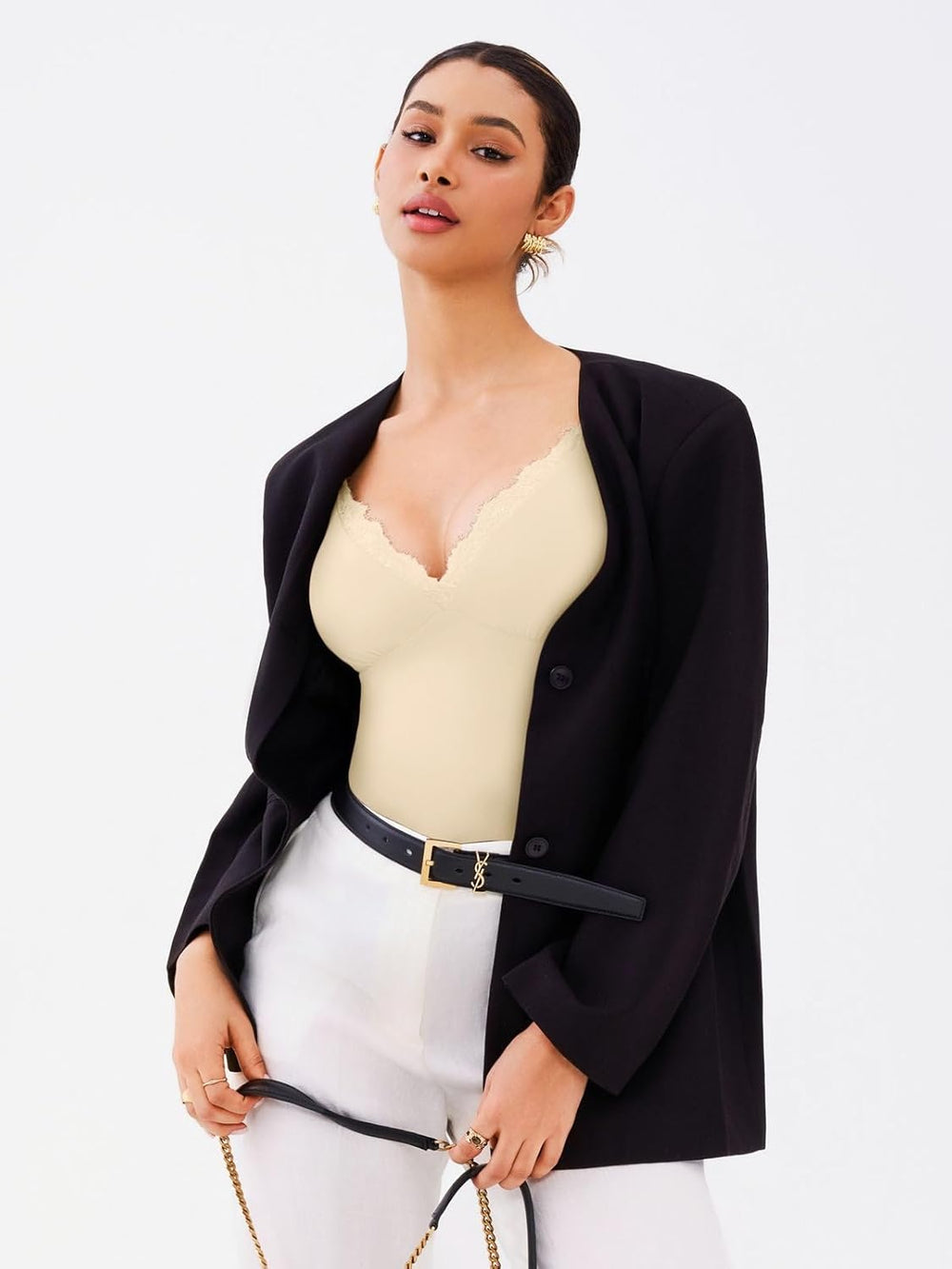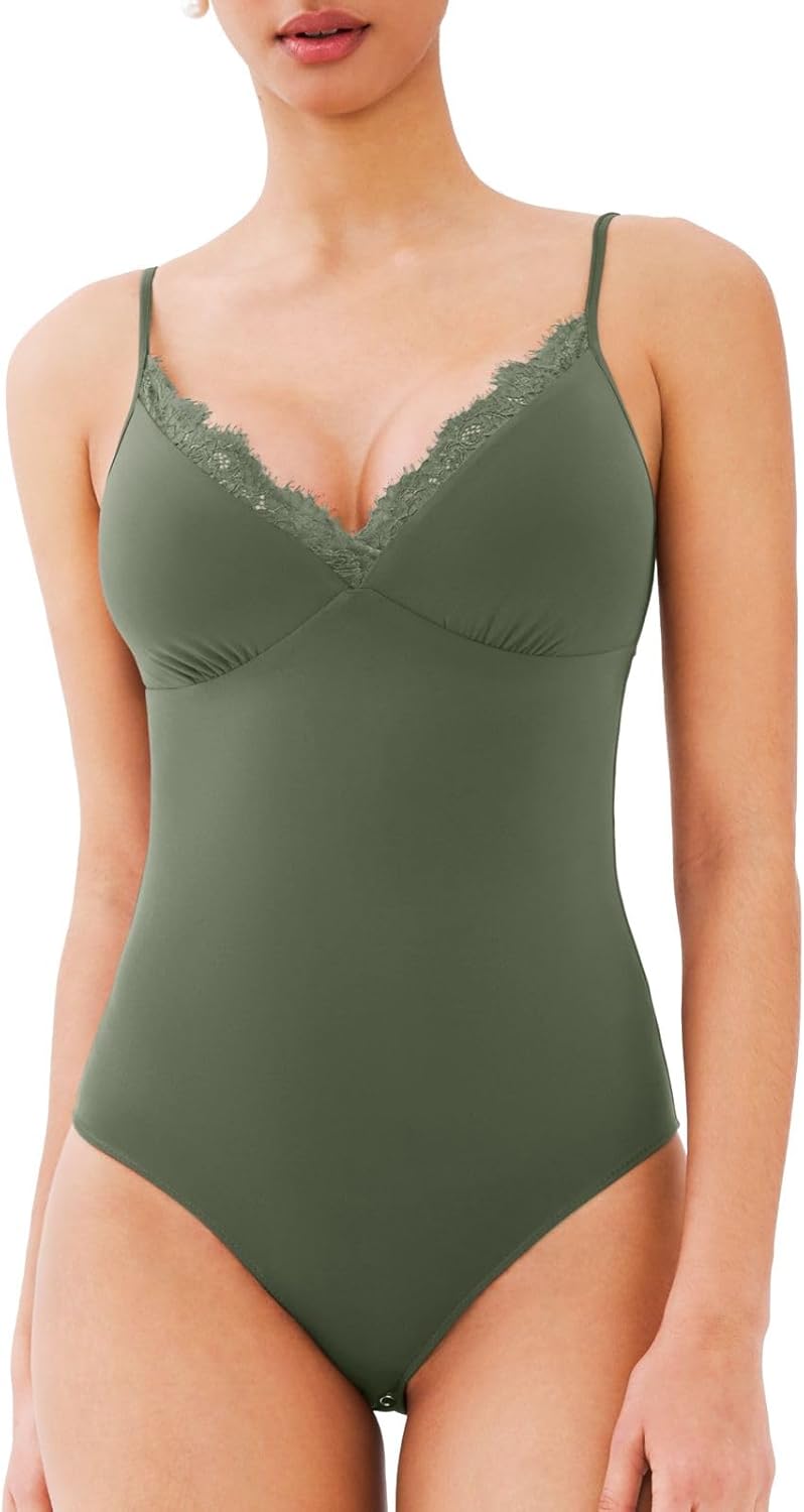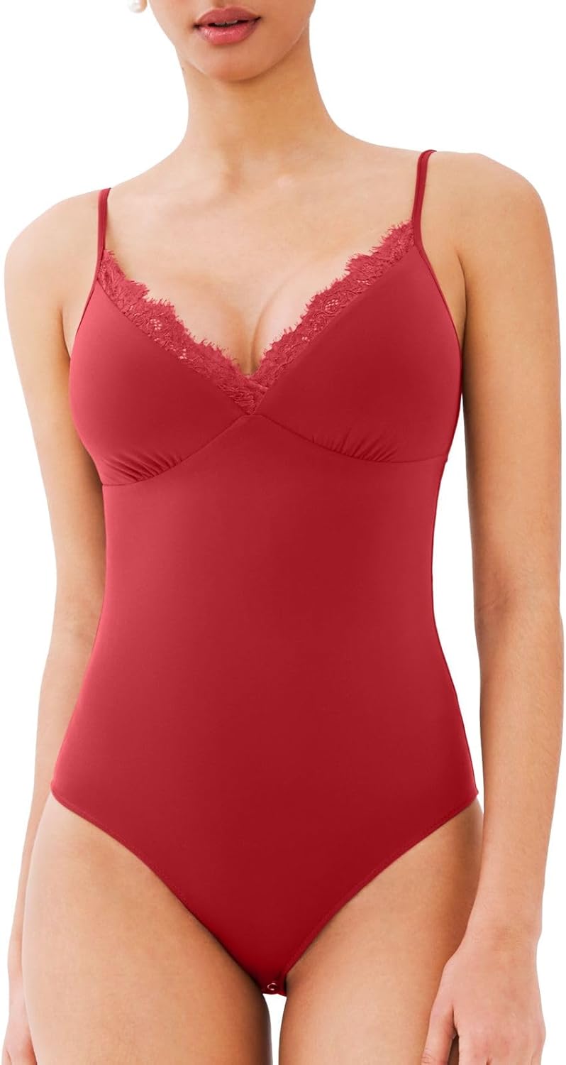 Designer Collection: This women's bodysuit combines a deep V-neckline with delicate lace trim and adjustable straps, blending elegance with sensuality. Part of the 2025 Spring/Summer Designer Collection, it’s perfect for creating chic, modern looks.
