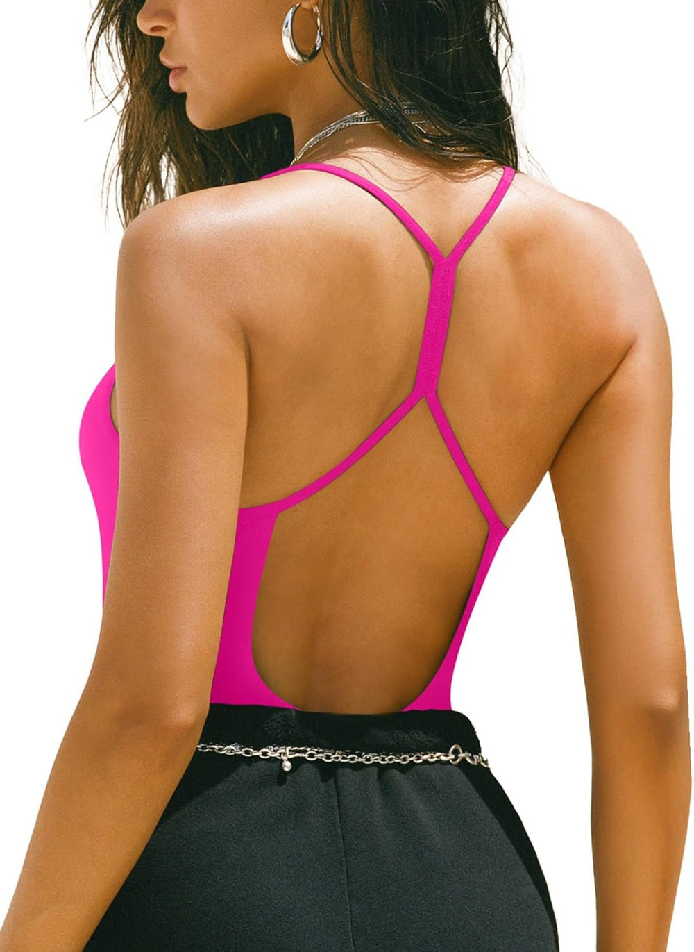 Open T-back: The women's sleeveless bodysuit tank features open t-back back. Easily show off women's graceful curves and create a sexy feeling on the backside.With two button fasteners at the crotch, it features easy on/off and also added convenient pockets to ensure comfortable daily activities
