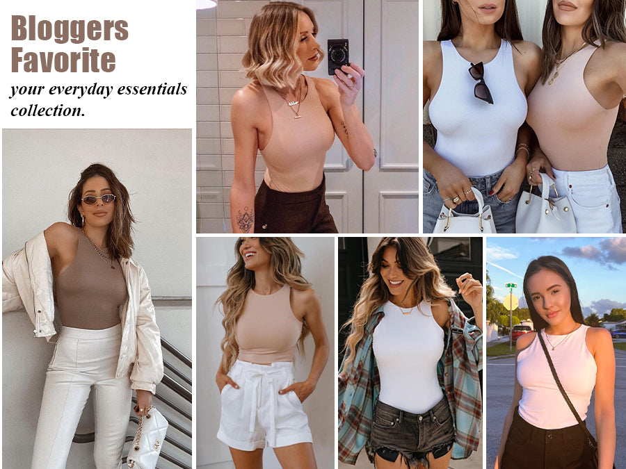 🌸The smooth silhouette of this racer back bodysuits,giving a tucked-in look,basic style which is bloggers favorite and perfect for your everyday essentials collection.