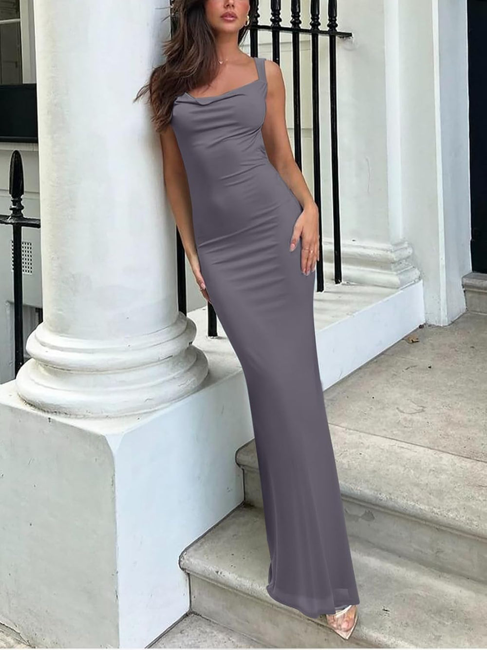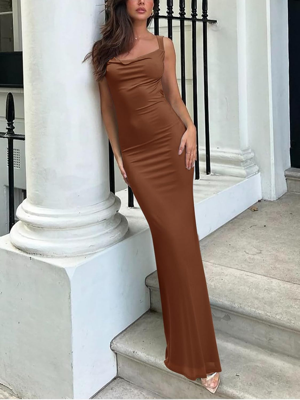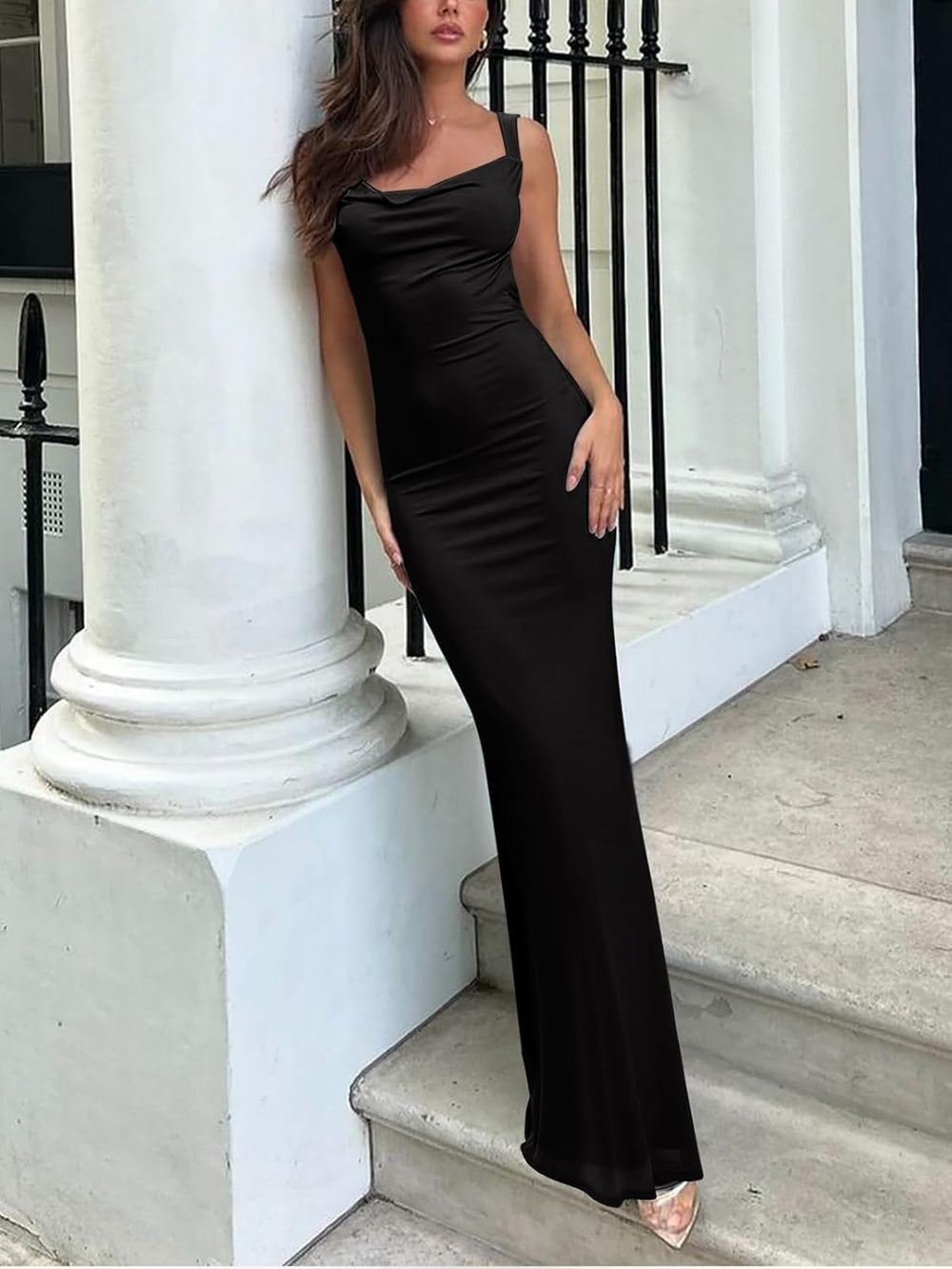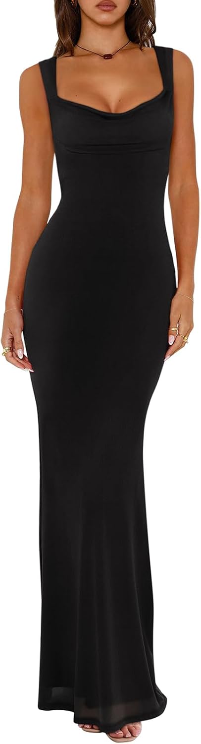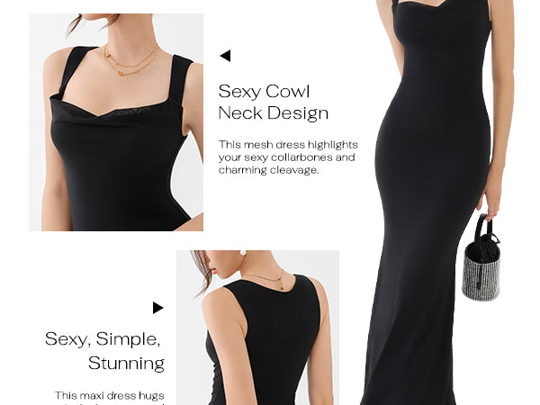 🌸This mesh maxi dres is slim cut design with flared bottom that shows the hourglass body curves for a confident mermaid look. Beautiful cowl necklined, this sleeveless dress highlights your sexy collarbones and charming cleavage.
