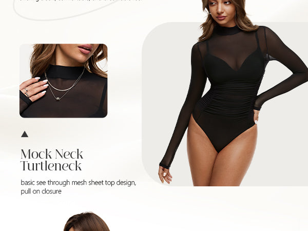 ✨ Perfect for Any Occasion: From date nights to lounging, this women’s bodysuit shines at parties, holidays, or home. The sheer long sleeve + turtleneck creates a fashion-forward statement—get ready to turn heads!