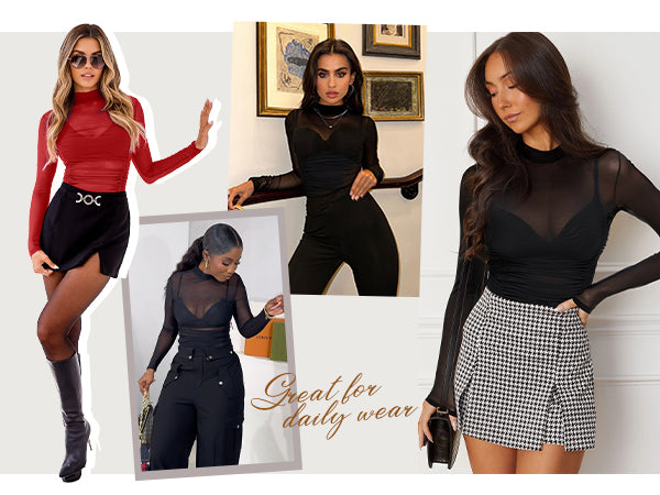 ✨ Sexy & Sophisticated Style: This turtleneck bodysuit blends sheer mesh with a high neck for a bold yet chic look. The see-through design highlights your curves, making it ideal for night outs, parties, or dates. Confidence looks this good!